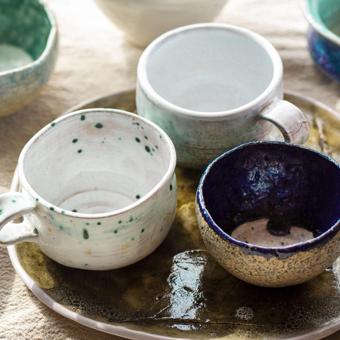 Een andere tip voor in de keuken is: Gekleurd servies. Dit hoeft zeker niet in de vorm van een compleet nieuwe serviesset, maar begin met een paar leuke koPie mokken of gebaksschoteltjes. Je hebt ze in felle kleuren met patronen maar ook in pasteltinten. Zo kun je heel subtiel nieuwe tinten toevoegen.