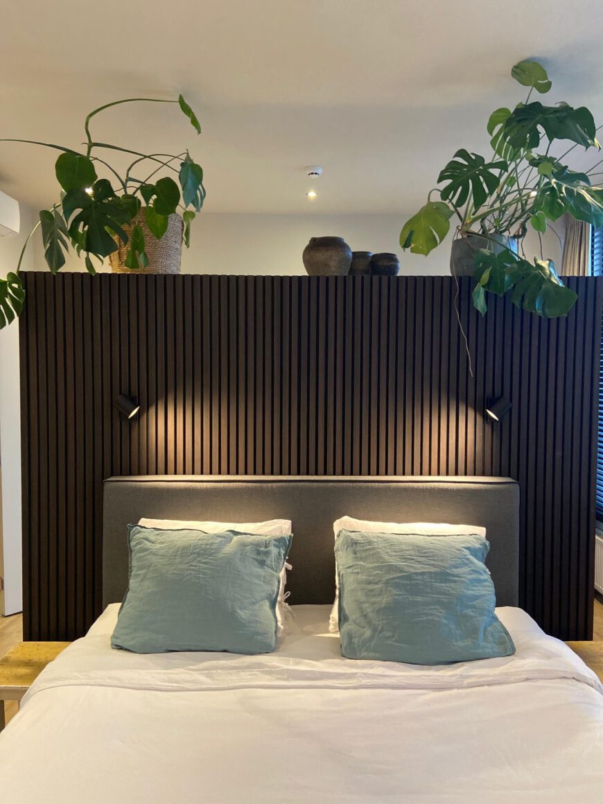 Akoestische lattenpanelen zijn momenteel een ware trend in het interieur van veel woningen, waar het vaak wordt toegepast in de hal, woonkamer en slaapkamer. Voor mijn interieuropdracht heb ik de akoestische panelen toegepast, op de wand van een B&B kamer, om de ruimte een luxere en warmere uitstraling te geven.