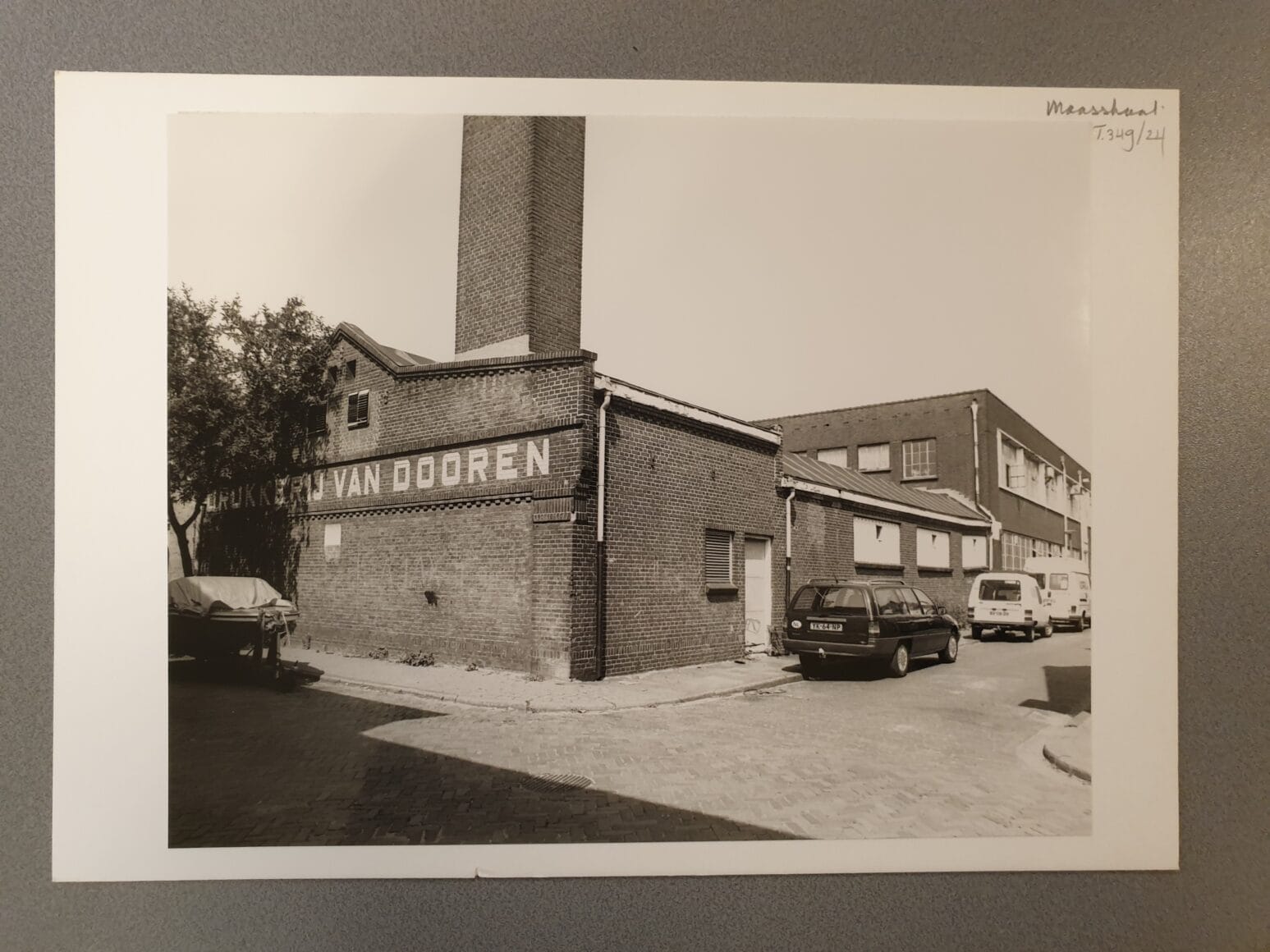 Daarnaast hebben we de originele rolbanen van de zeefdrukkerij behouden en deze prachtig geïntegreerd in het interieur. In het kantoor hebben we een oude letterbak van een drukkerij en de originele bouwtekening uit 1934 ingelijst – een ode aan de rijke geschiedenis van het pand.