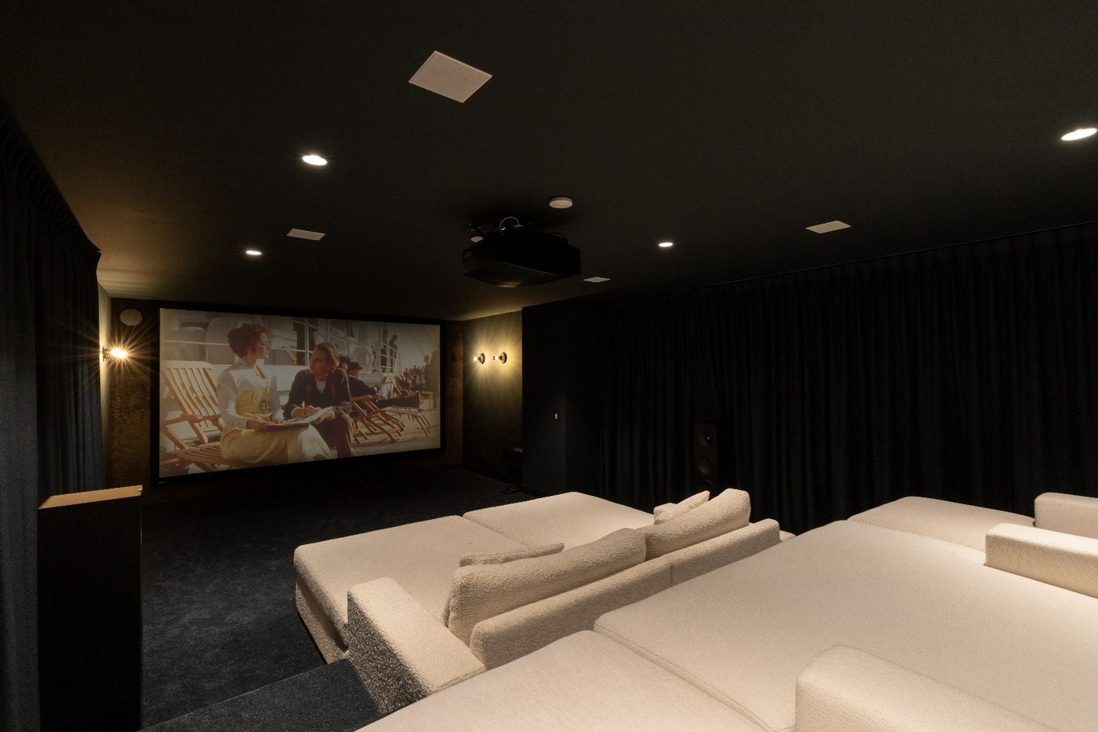 Het entertainen is in dit huis een belangrijk element van het woongenot. De prachtige keuken om urenlang te dineren hebben we al omschreven. Ook het zwembad is al aan bod geweest. Wat we nog niet benoemd hebben is de bioscoop met relaxfauteuils. Hier is een film kijken een echte beleving.