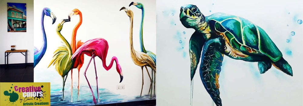 Over schilderen gesproken. Een mooie mural binnen of buitenshuis geeft net dat extra tropische effect. Denk aan wat flapperende flamingo’s of een sluimerende schildpad. Er zijn meerdere plaatselijke kunstenaars die pareltjes van plaatjes kunnen komen creëren.