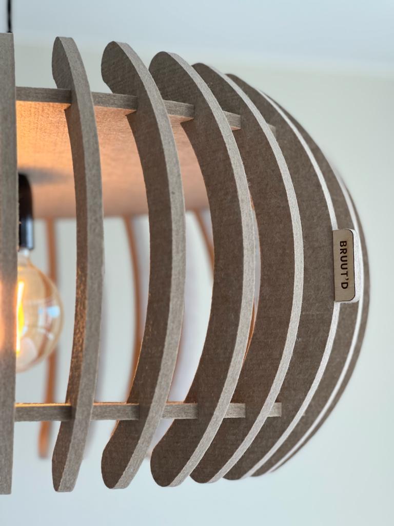 Het PET-vilt dat BRUUTD. gebruikt, bestaat voor 60% uit gerecyclede PET-flessen. In de lampen worden circa 70 tot 140 flessen verwerkt. Dit maakt de producten heel duurzaam. Daarnaast kan vilt ook helpen voor de akoestiek in de ruimte. Door verschillende materialen in huis of op kantoor te gebruiken, kun je galm wegnemen. Alle lampen van BRUUTD. zijn verkrijgbaar in 28 verschillende kleuren vilt. Er is dus voor iedere ruimte een geschikte kleur te vinden. Vilt is super leuk te combineren met andere materialen, dus het zal in geen enkel interieur misstaan.
