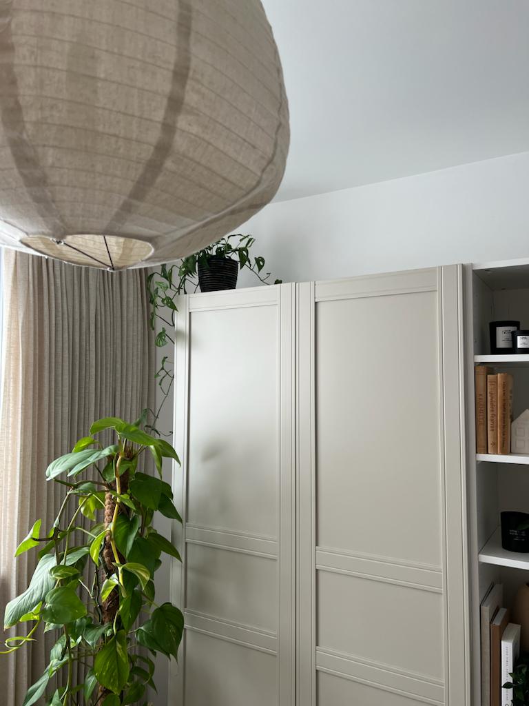 Mijn thuiskantoor moest naast een bureau ook genoeg opbergruimte hebben, omdat ik veel stalen en administratie op te bergen heb. Aan de andere wand moest daarom een kastenwand komen. Niet alleen moest er veel opbergruimte komen, maar het moest er uiteraard ook nog leuk uitzien. Daarom kwam er een kast in het midden van de kastenwand zonder deuren. Deze kast kan ik iedere keer opnieuw stylen met leuke items.