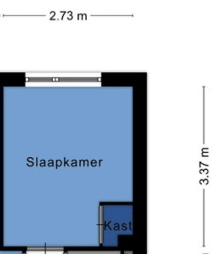 De ruimte die ik heb ingericht als thuiskantoor is 3,40m breed bij 2,75m lang. Mijn oude tafelblad bestond uit twee delen. Ik bedacht om het tafelblad daarom te gebruiken als bureau. De diepte van het blad past precies in een inkeping achter de deur in de ruimte. De bladen waren naast elkaar alleen net iets te breed voor de ruimte. Daar bedacht ik ook een oplossing voor. Er moesten twee werkplekken komen in mijn thuiskantoor, zodat ook collega’s of vriendinnen kunnen komen werken.