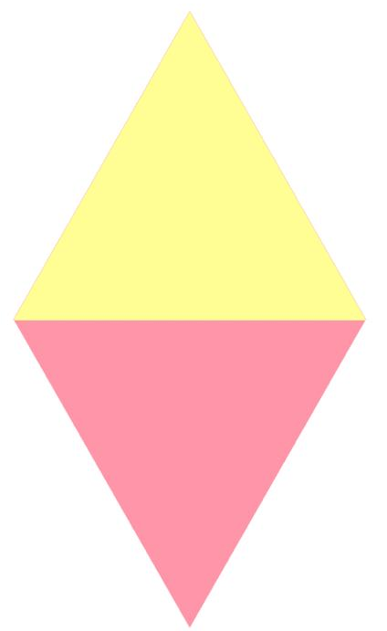 - Schilder 2 grote driehoeken op de muur die samen een ruit vormen.