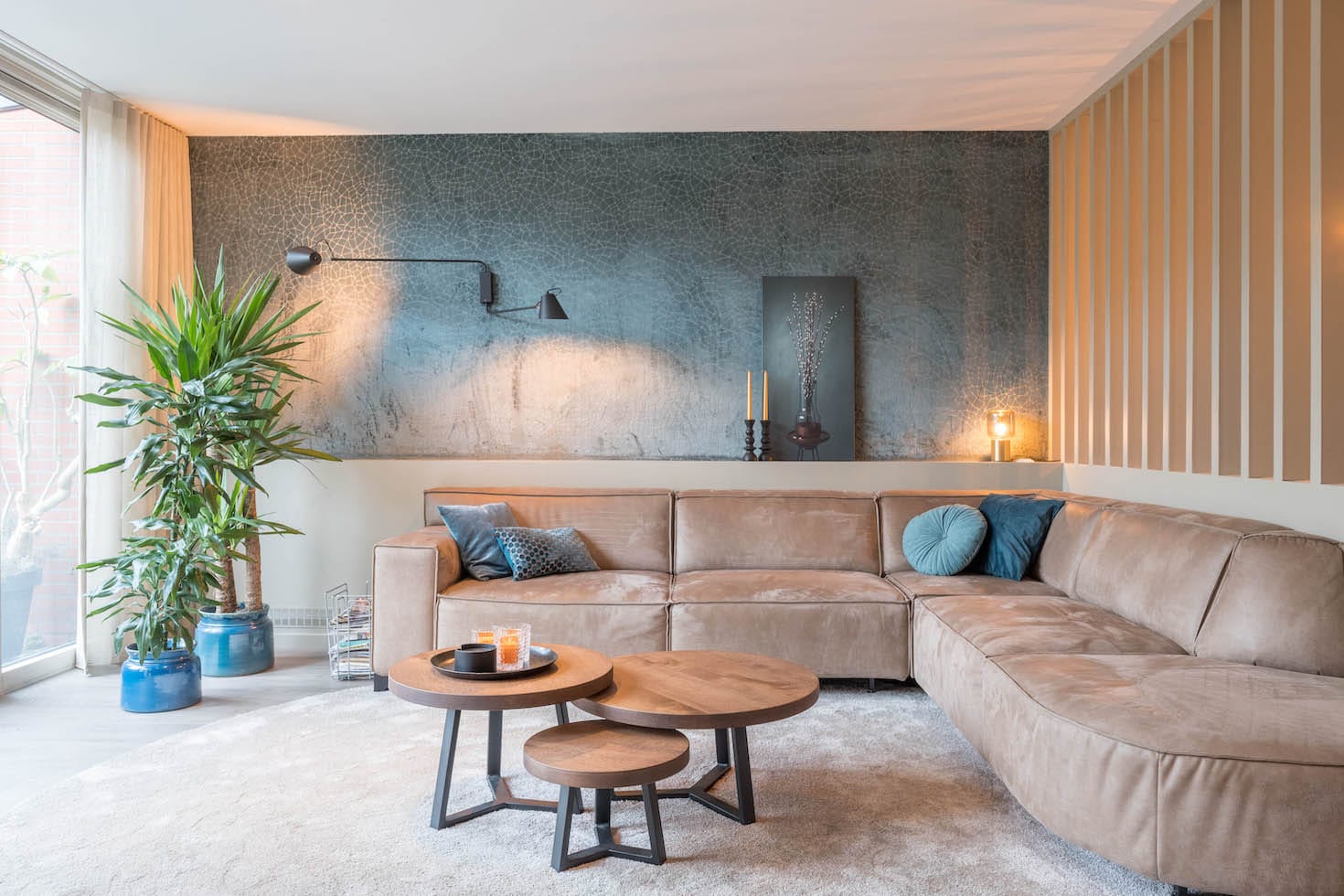 Wil je iets meer durven? Overweeg dan een accentmuur of een kleurvlak. Dit kan een geweldige manier zijn om een statement te maken zonder dat het direct te overheersend wordt. Een halve muur schilderen of een rechthoek achter een kast of bank kan al een speels effect geven.