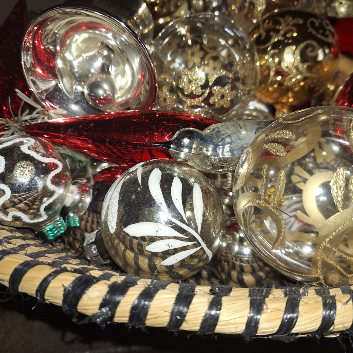 Mijn passie voor antieke en vintage kerstversiering verzamelen kan hier eindelijk worden ingezet, de enorme voorraad oude ballen, glazen ornamenten en linten hang ik mooi verspreid in de berkentakken. Hier en daar steek ik er pampusggrassen tussen en natuurlijk mag de rode Cornus niet ontbreken voor wat extra kleur en pit.