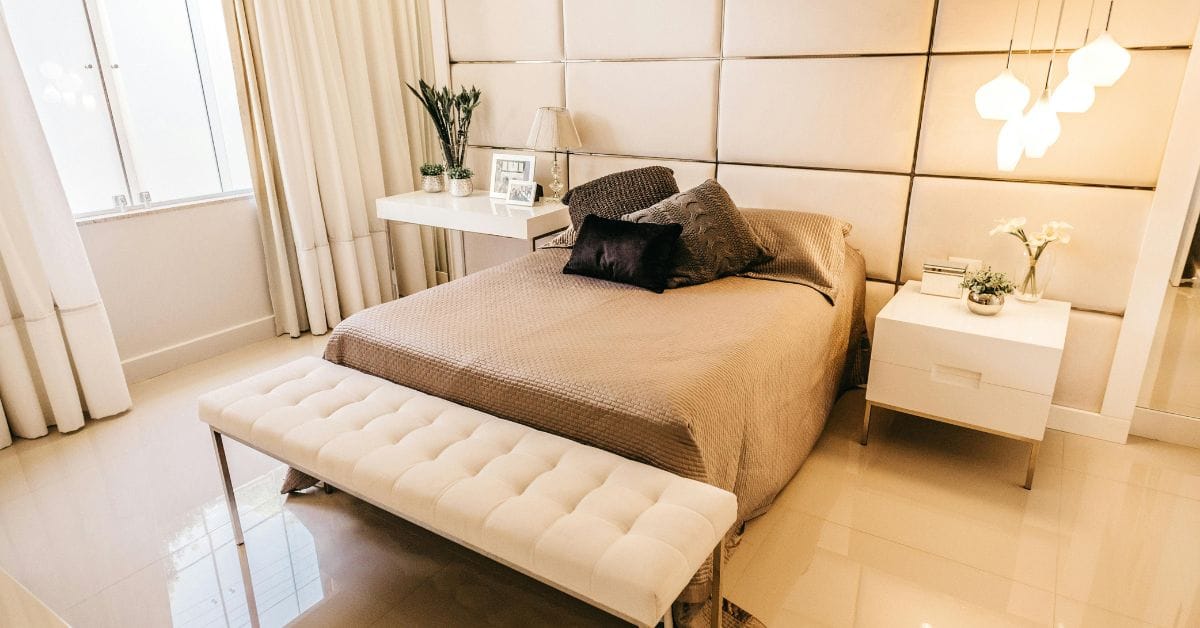 De slaapkamer moet een plek zijn waar je volledig tot rust kunt komen. Kies voor kalmerende kleuren zoals blauw, beige of zachtgroen. Een comfortabel bed is natuurlijk een echte must. Maar vergeet ook niet de details. Een zacht vloerkleed naast je bed, verduisterende gordijnen en nachtlampjes met dimfunctie maken het geheel compleet. Zorg ervoor dat de slaapkamer altijd netjes blijft; dat helpt om de rust te bewaren. Less is hier echt more.
