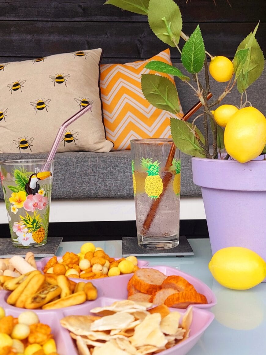 • Durf ook hier een thema of stijl te kiezen. Bv Boho, zwart/wit, landelijk, … Ikzelf koos voor deze zomer de combinatie van gele en lila accessoires.