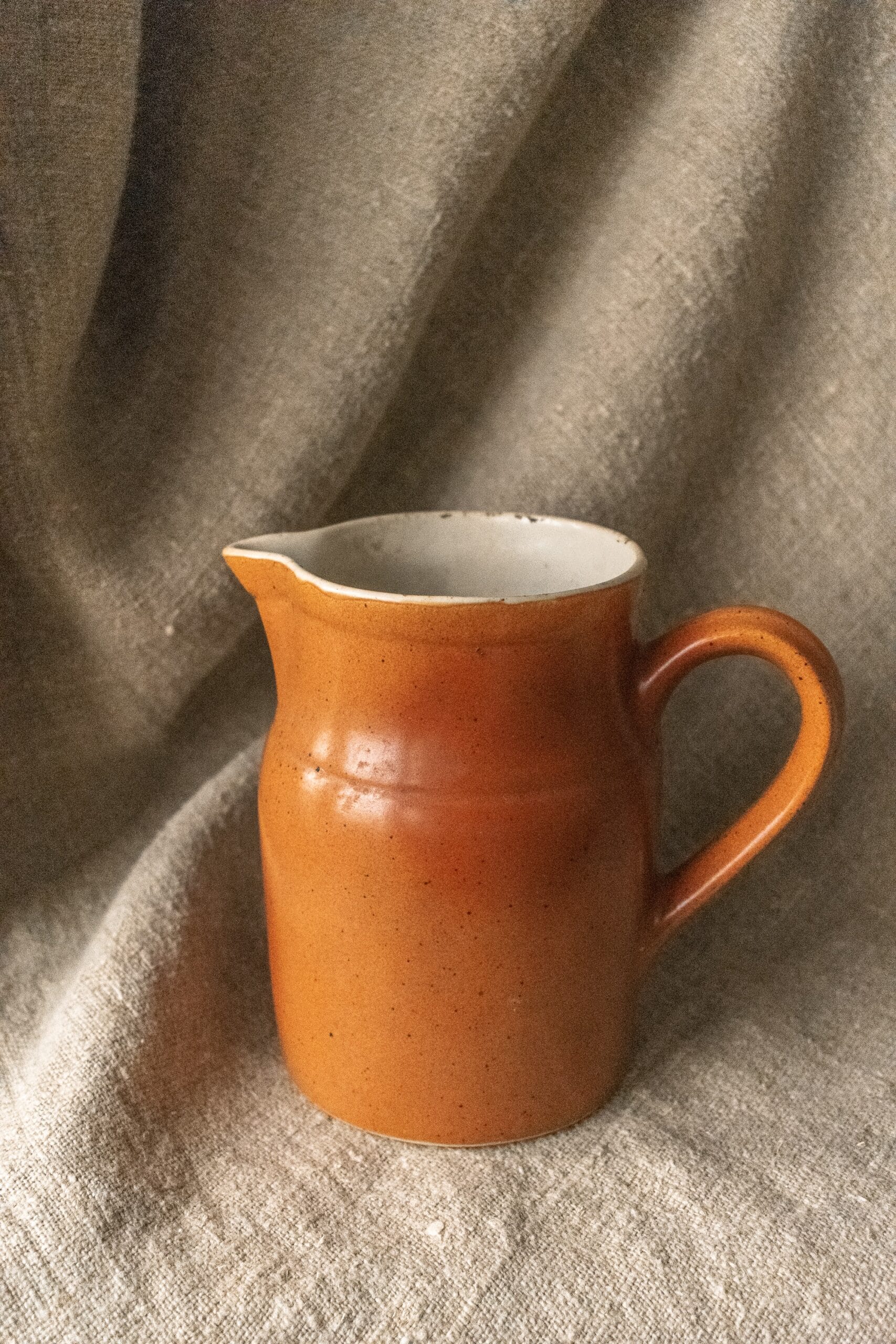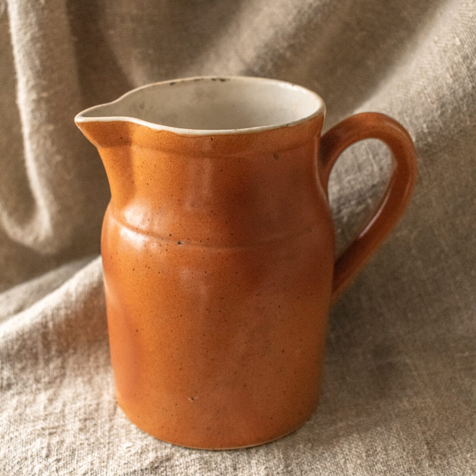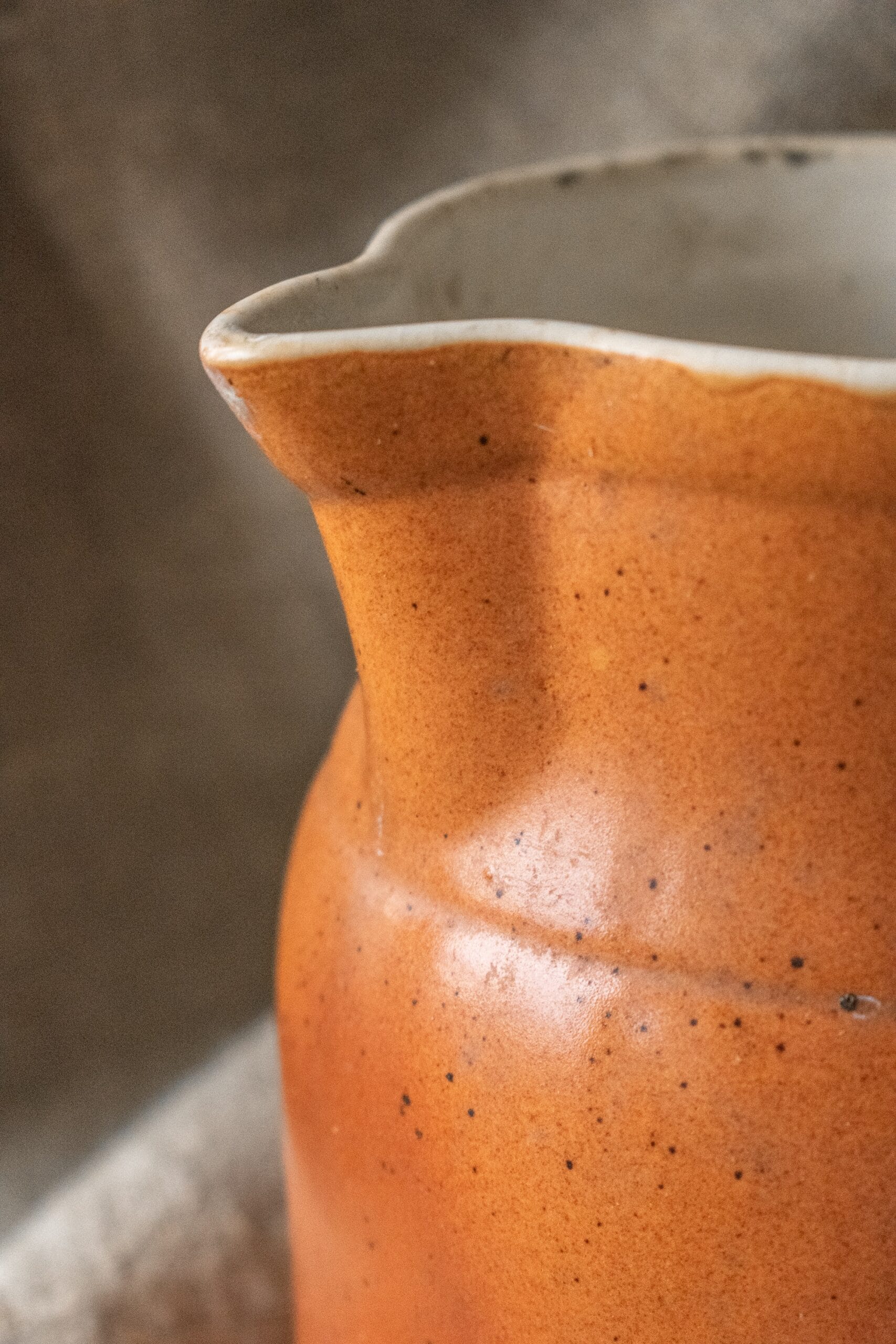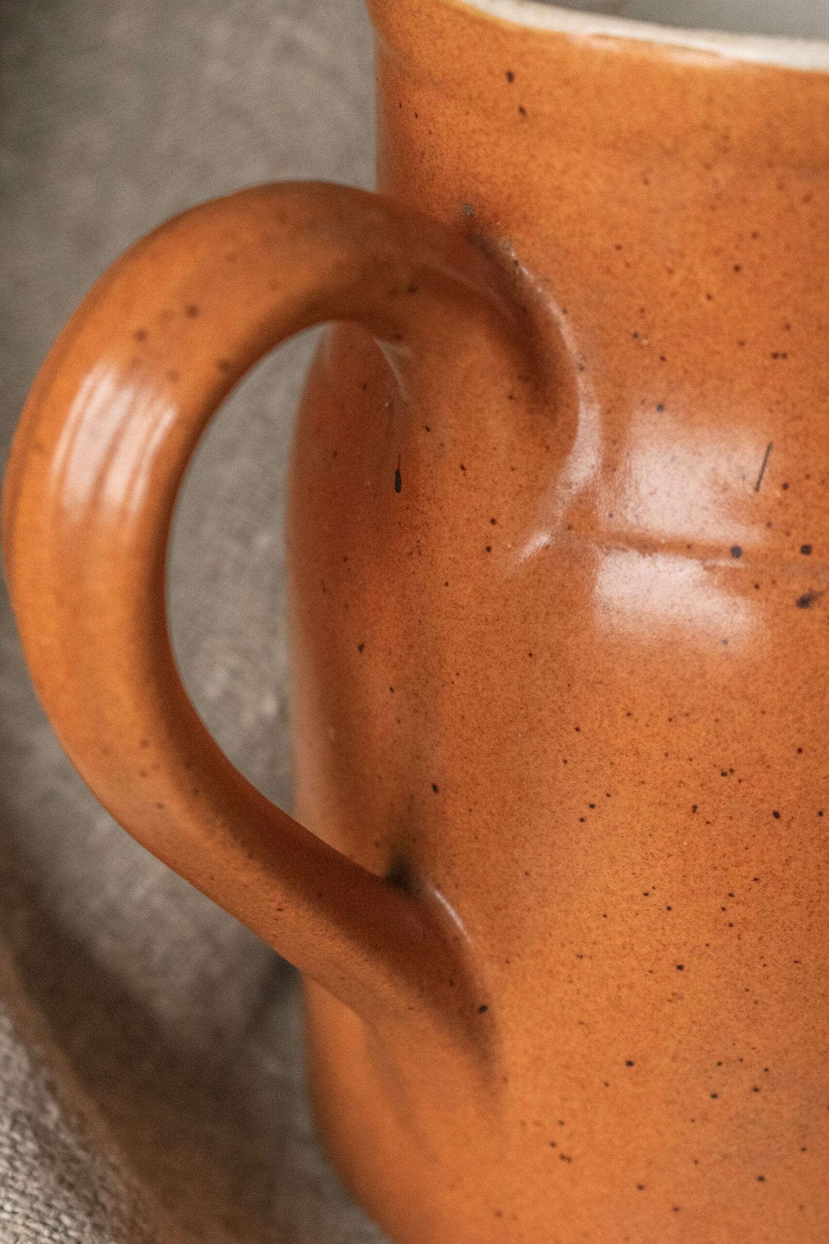 Dit Franse wijnkannetje is met de hand gemaakt in Frankrijk van hoogwaardig steengoed. Het heeft een geglazuurde binnen- en buitenkant.